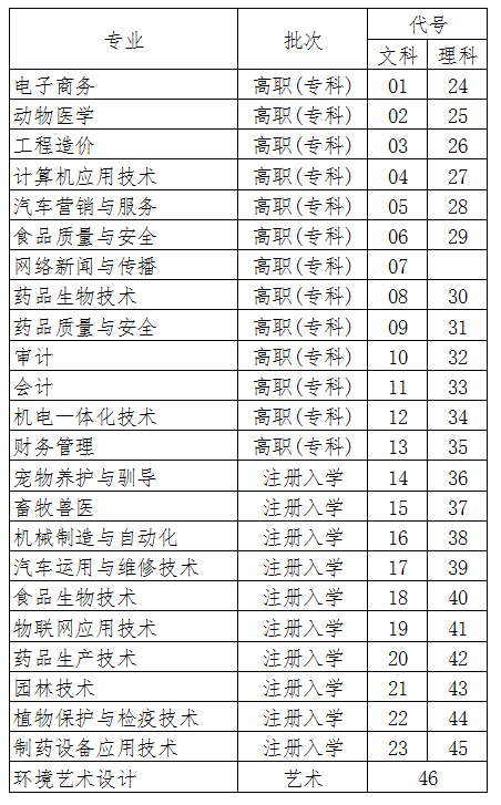 2016我院在苏招生各批次专业代号