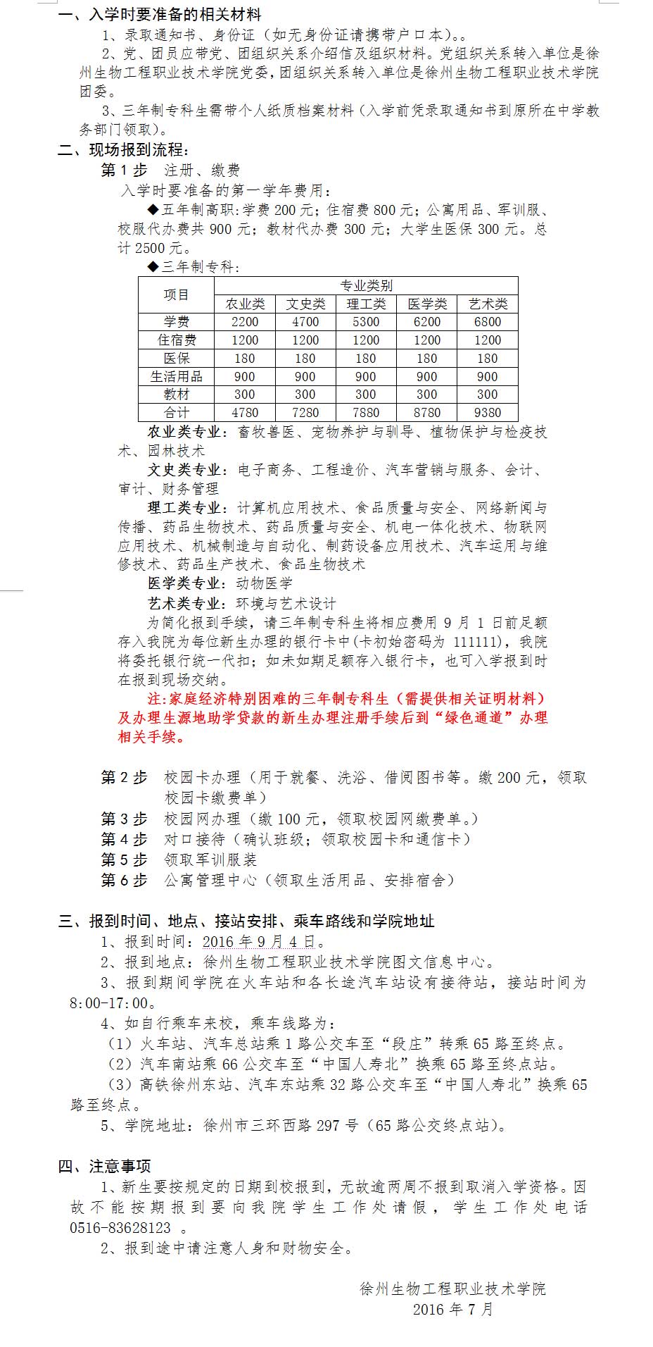 2016级新生入学须知