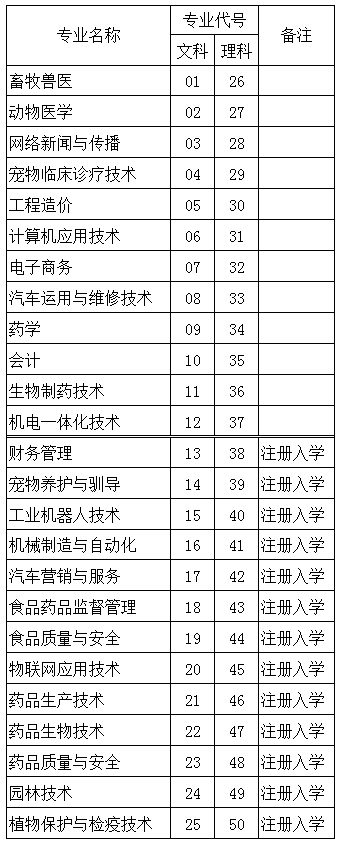 专业代号(2018年高中起点三年制专科在苏招生专业)