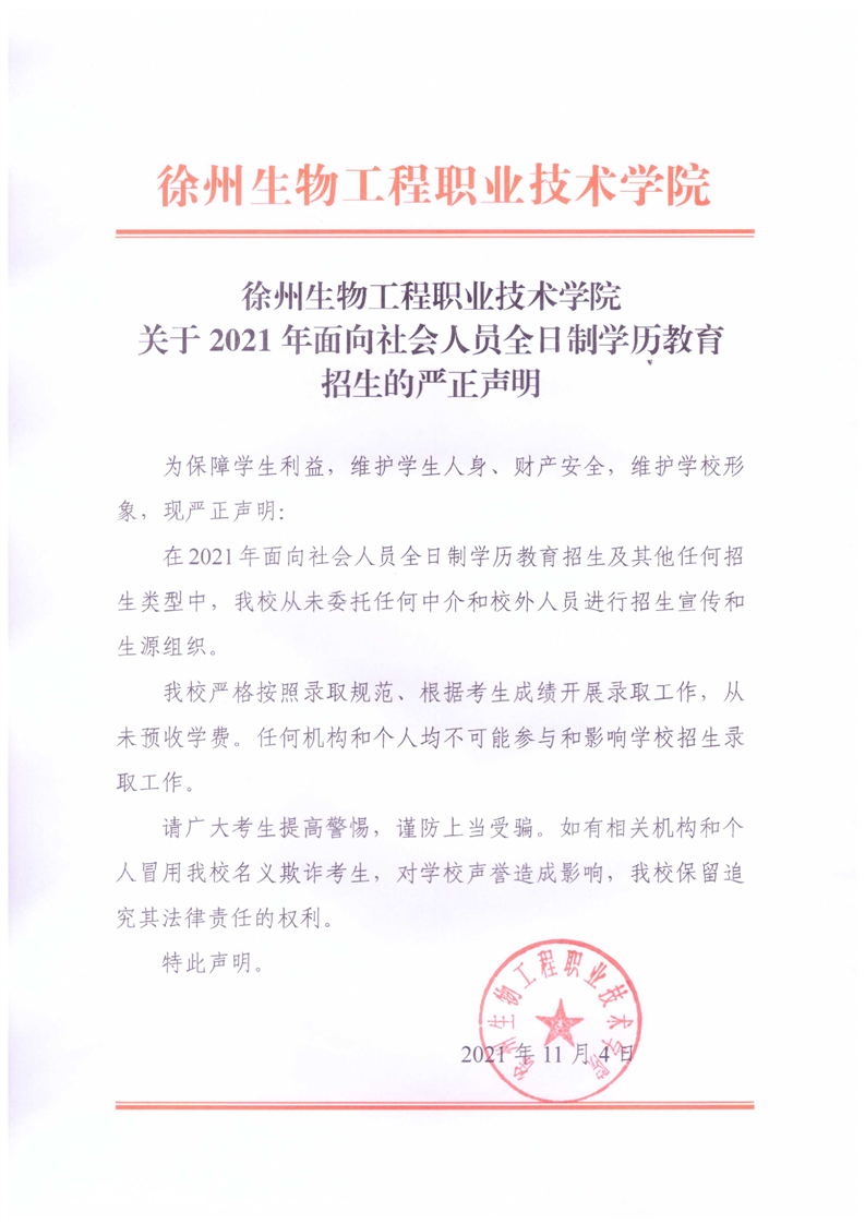 学院关于面向社会人员全日制学历教育招生的严正声明