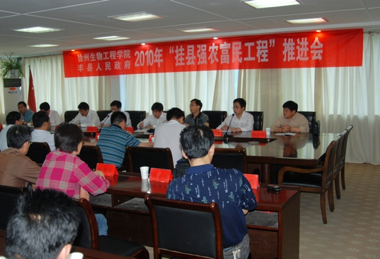 党委书记、校长蒋留生,副校长秦越华,学院有关处系领导及15名挂县强农富民专家参加了推进会。丰县人民政府副县长徐国良,县农委主要领导,丰县果树、蔬菜、畜牧、兽医及植物保护技术推广站的专家及有关镇及5个村的领导参加了推进会。