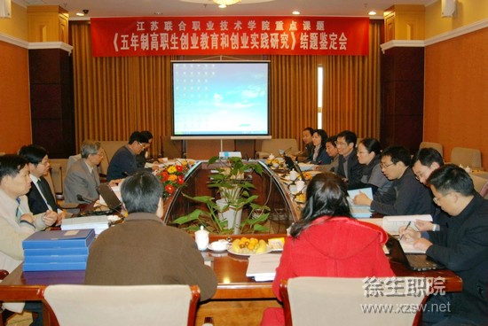 2010年11月19日,江苏联合学院2008年重点课题《五年制高职学生创业教育与创业实践研究》(主持人:蒋留生、李明华)结题现场会在徐州市西方友谊宾馆会议室隆重召开。该课题为徐州生物工程分院和泰州机电分院的合作研究项目。江苏联合职业技术学院院长马能和、江苏省高教学会副会长邱坤荣、江苏联合职业技术学院扬州商务分院校长周俊、徐州市职教协会秘书长屈新安、江苏联合职业技术学院教学科研处副处长程又鹏作为课题鉴定专家组成员出席了会议。主持人所在单位的徐州生物工程分院的全体校领导和泰州机电分院的马永祥副校长出席了会议。课题主持人蒋留生、李明华及部分课题组成员参加了会议。结题鉴定会由徐州生物工程分院副校长秦越华主持。