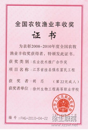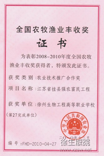 我院获农业部农牧渔业丰收奖