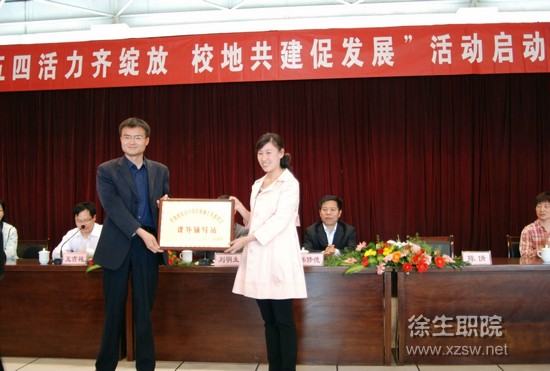 今日上午, 我校与泉山区段庄街道办事处“创先争优”校地共建活动签约揭牌仪式在综合楼6楼会议室举行。泉山区总工会、组织部,共青团泉山区委及学校相关负责人出席仪式。