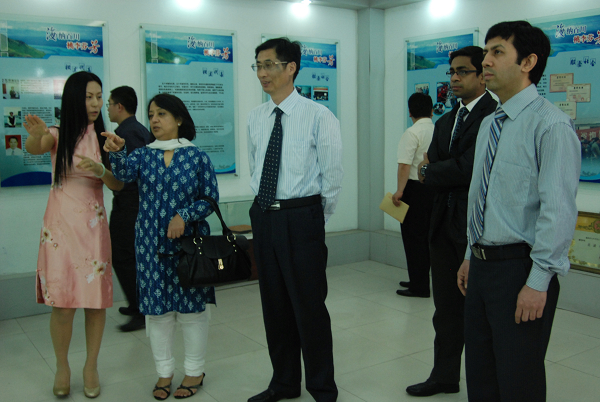 之后,外宾观看了学院电视专题介绍,在校领导的陪同下考察了校园、校史馆,并与我校印度籍教师、信息工程系、生物工程系师生进行了座谈交流。信息工程系就与NIIT合作办学情况向戴思锐总领事作了汇报,生物工程系介绍了生物制药专业的建设和发展情况,双方就下一步扩大合作进行了的交流。戴思锐总领事感谢学校的热情接待,表示此次访问非常愉快,对我校NIIT项目合作办学取得的成绩给予了充分肯定。最后戴思锐总领事为学院题辞,希望学院、NIIT项目和所有学生都能有一个灿烂的明天。