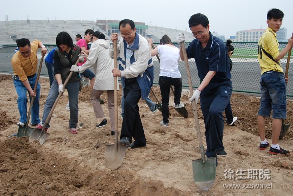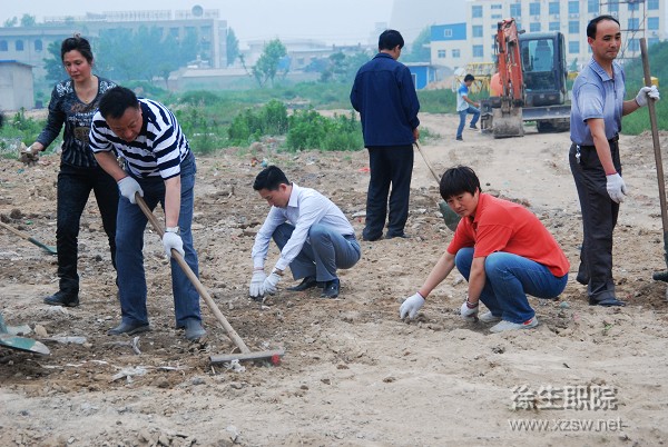5月30日下午,学校全体党员利用党员组织生活时间,扛起铁锹,对新运动场边的绿化地带建筑用地上的建筑垃圾进行了清理。党员们用铁锹将掺杂在土中的废物、砖石清理到路边,并进行了松土,用辛勤的汗水践行创先争优的庄严承诺,用良好的精神风貌亮起了党员的旗帜。