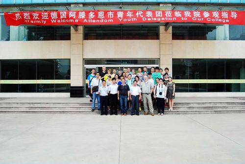 2011年是中欧青年交流年,为进一步促进中德两国青年之间的友好交流,德国北威州阿滕多恩市青年组织与徐州团市委签订了《中德青年未来使者计划合作备忘录》,今年双方合作的重点是“两个国家,两种文化――同一世界”青少年专题交流活动。此次来访的代表团将深入了解徐州的教育、风土人情,并与徐州青年开展深入交流。作为一所以生物工程类专业为特色的职业院校,我院一直高度重视自然科学课程建设,尤其关注生态环境健康食品教育,是联合国教科文组织EPD教育项目实验学校、可持续发展学校,徐州市青少年科普教育基地,此次德国青年团是我院今年暑期接待的第3批前来参观访问的外国朋友。