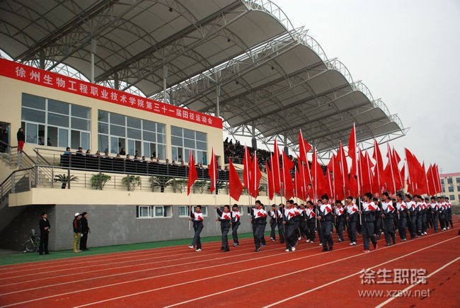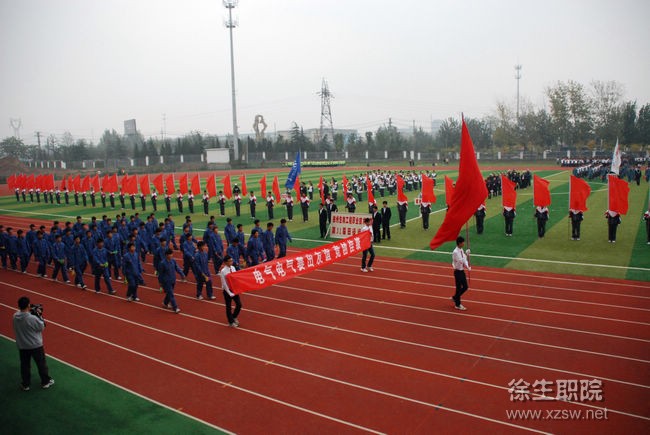 在催人奋进的运动员进行曲中,国旗手们手擎红旗,气宇轩昂、精神抖擞地正步走在崭新的塑胶跑道上,各系方阵身着统一服装,步伐整齐,口号嘹亮,从主席台前走过,大家挥舞着花束、小国旗、丝带,表达内心激动的心情。