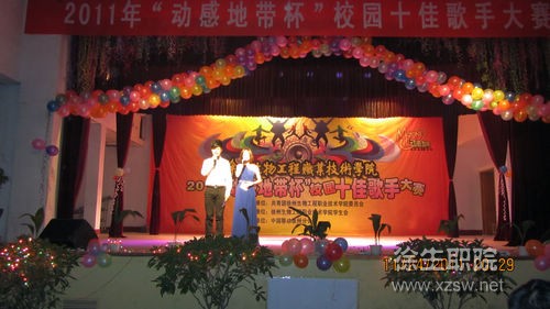 由校团委主办、校学生会承办的2011年“动感地带杯”校园十佳歌手决赛于11月24日晚落下帷幕。副校长刘明生、校团委书记丁永辉以及各系团总支书记观看了比赛。