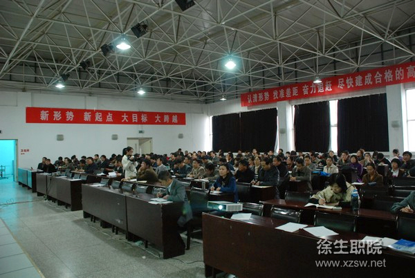 为什么成功升格为高职院校之后,不能高枕无忧反而是艰苦奋斗的开始?面临着生源稀缺的时代,面临着不平等的竞争,我们心里有底吗?面对3年后的人才培养评估,作为学校的一份子,我们准备好了么?我们应该做什么?这一系列关系着全校发展的问题,4月12日下午,在综合楼六楼报告厅,党委书记、校长蒋留生同志向在座的300多名与会教师进行了阐述和交流。