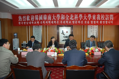 4月19日,韩国全北科学大学国际教育院院长金一中、语学院主任李金女及韩南大学语学堂主任李基宗等一行四人来我院访问。校党委书记、校长蒋留生,副校长秦越华、刘明生等接见了客人。市外事办副主任孙卫民陪同访问。