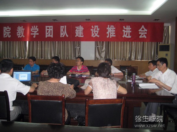 为加快推进我校首批立项的7个教学团队的建设步伐,5月15日下午,教学团队建设推进会在综合楼一楼会议室召开。参加会议的人员有党委书记、校长蒋留生、副校长秦越华、教务处正副处长、各系部教学主任及各教学团队负责人,会议由秦越华副校长主持。