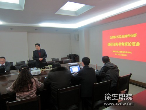 12月10日上午,我院江苏省“十二五”重点建设生物技术及应用专业群建设任务书专家论证会在综合楼一楼会议室举行。蒋留生校长、秦越华副校长、刘明生副校长及徐州工程学院食品科技学院刘恩岐副院长等九位校内外专家出席了论证会。专业群建设项目的负责人张韧主任和团队成员参加了论证会。秦越华副校长主持了会议。