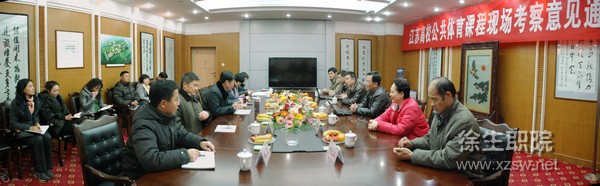 12月17日,省教育厅江苏高校公共体育课程考核专家组对我院公共体育课程建设情况进行现场考核。专家组由江苏技术师范学院副院长周全法教授任组长,成员包括南京大学体育部主任沈如玲教授、江苏大学体育部主任李明学教授、江苏技术师范学院体育部主任曾红卒教授、南京信息职业技术学院体育部主任梁培根教授。校党委书记、校长蒋留生,副校长秦越华、刘明生陪同考察。
