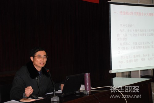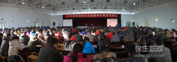 12月18日下午,校党委书记、校长蒋留生同志在综合楼六楼报告厅为全校党员和教职员工做了题为《认真学习十八大精神,提高教育教学质量,办人民满意高职学院》的报告,开启了我校党的十八大精神宣讲活动的第一讲。 蒋校长首先对党的十八大报告、新党章和新一届中央领导集体讲话中涉及的学习要点作了系统梳理和解析。他着重从十八大的会议情况、会议主题、会议五大成果和会议的特点等四个方面进行了阐述和分析。 结合党的十八大报告内容,蒋校长以坚持教育为社会主义现代化服务的根本任务为主线,通过鲜活的案例和详实的数据,结合学校当前的发展形势,从学校科学发展的着力点、保障和途径三个方面指出,学习十八大精神,必须着力于学校的发展,着力于提高教育教学质量,着力于办人民满意的学院。要求全校教职员工认真分析形势,正视发展差距,鼓励大家在学习和工作中激活思维,解放思想;注重团队建设,协同创新,切实将学习党的十八大精神落到实处。 中共中央于近日印发《关于认真学习宣传贯彻党的十八大精神的通知》后,学校党委经过研究对我院学习十八大精神作出了具体的安排,要求各党支部和部门,以集中学、分头学、读原文、谈体会等多种形式,组织全体党员和职工通过报纸、网络、电视广播自觉加强学习,全面深刻了解十八大精神。 (供稿:办公室)