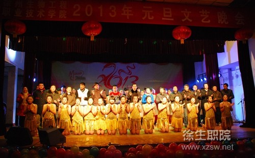 辞旧迎新庆元旦,流光溢彩孕华章。12月29日晚,院大礼堂华灯璀璨,由院团委主办,院学生会、学生社团承办的我院2013年庆元旦文艺晚会在此隆重举行。校党委书记、校长蒋留生、副校长秦越华、刘明生及各系部处室负责人来到现场,和师生们一起观看了演出。