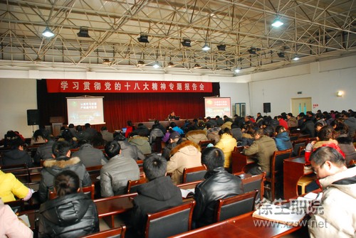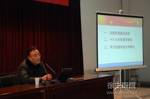1月8日下午,学校组织党的十八大精神学习报告会,监察室主任赵宇善同志以《认真学习党章,严格遵守党章》为题,为全校师生党员和入党积极分子作了一场解读新党章,学习新党章的报告。
