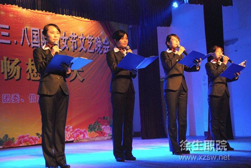 3月8日晚,学院大礼堂欢声笑语,春意浓浓。由院妇委会、工会、团委、信息中心主办,基础部承办的庆祝“三・八国际妇女节”文艺晚会隆重举行。校党委书记、校长蒋留生同志特意为晚会作词一首《三八节抒怀》,向全校女职工表示节日的慰问。