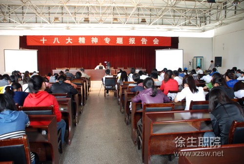 4月16日下午,蒋校长在综合楼六楼报告厅为学校师生作了题为《十八大精神与中国梦及我们的责任》的专题报告。 蒋校长深入浅出、系统全面地解读了党的十八大报告提出的新思想、新表述、新论断,进一步加深了我院广大师生对党的十八大精神的认识和理解。报告中,蒋校长还为大家解读了什么是中国梦,引用了大量我院毕业生努力创业的典型事迹,阐述个人梦想与国家梦想的关系,鼓励每位学子认真学习,学好本领,实现每个人的梦想,进而实现中国梦,赢得了现场师生的热烈掌声。 信息工程系、机械工程系部分师生在现场听取了报告。校园电视台进行了现场直播,全院学生在教室里认真收看了报告会。
