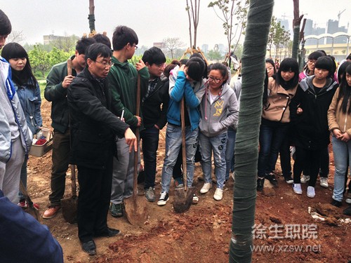 4月23日下午,校绿委组织学生对校园新建绿化区内的七叶树、香樟树进行树体保护。园林技术、园艺技术、植物保护11级高职五个班100余名学生,在班主任的带领下,按照相关技术标准要求,对新植树木进行树穴改造,为后期植物根系处理和树体保护做准备。