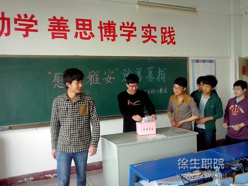 四川雅安发生地震灾害后,灾区的一切牵动着我院师生的心。4月28日,院团委积极响应团市委的号召,向全院发出为灾区捐款的倡议,各系团总支组织各班级利用班会课时间开展特殊团日活动。全院广大团员青年迅速行动起来,积极交纳特殊团费,充分发扬“党有号召,团有行动”的优良传统,展示了共青团组织的先进性、责任感和奉献精神。
