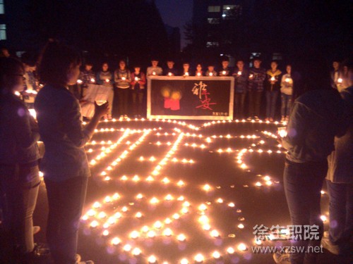 4月27日晚,院学生会组织50多位学生干部在三号教学楼前篮球场举行了主题为“祈福雅安,大爱永存”的祈福活动,一起为四川为雅安祈福。
