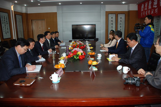 蒋留生校长对金东俊校长一行的到访表示热烈的欢迎,并回顾了两校交往的过程,介绍了对下一步合作的打算。金东俊校长对学校热情接待表示感谢,认为此前通过教师访问、夏令营等活动的开展,双方合作有了很好的开头,希望进一步挖掘合作领域,扩大合作范围,增加合作形式,取得更大的成果。双方就下一步两校合作进行了深入交流,就建立海外实习基地、教师访问、学生夏令营等交流达成一致意见。韩国客人还观看了学校介绍专题片,考察了学校校园、农林生物实训中心及徐州市规划馆。
