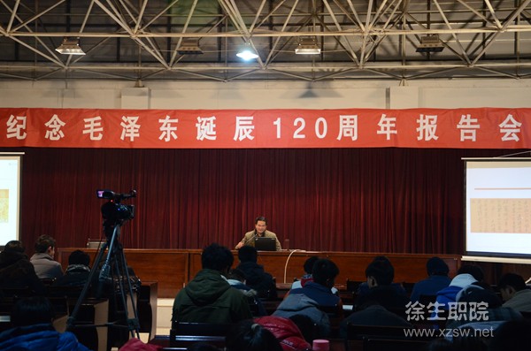 12月19日下午,院团委在综合楼六楼报告厅举办了“纪念毛泽东诞辰120周年报告会”,农林工程系周保亚主任为我院师生作了题为《毛泽东与书法艺术》的知识讲座。 讲座期间,周主任深入浅出,旁征博引,结合历史资料,从“毛体书法艺术特点、毛体书法演变、毛体书法艺术赏析”等方面,向大家解读了毛体书法的深刻内涵,阐述了毛泽东书法和毛泽东光辉思想之间的重要关系,使大家加深了对毛主席书法的认识和理解。 (供稿:院团委)