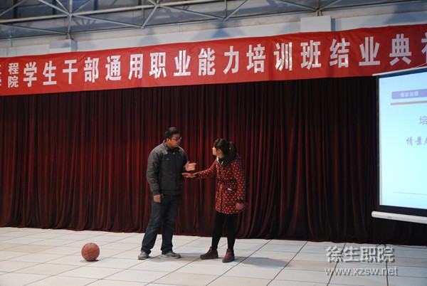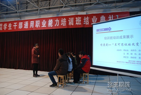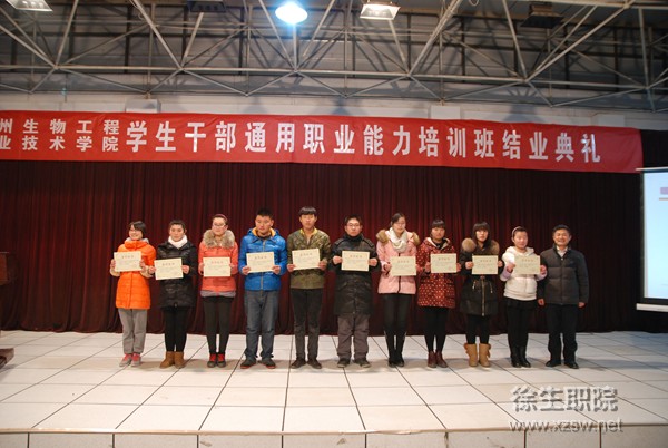 1月3日,我院学生干部《通用职业能力》培训班结业典礼在六楼报告厅举行。副校长刘明生,团委书记丁永辉,优肯学校校长张娟梅出席结业典礼。各系学管主任、团总支书记及培训班全体学员参加了结业典礼。典礼由团委书记丁永辉主持。 结业典礼上,培训班班主任王晴老师对本期培训班的培训情况作了小结。学员代表王灿、刘香伶、马珊珊同学分别发言,讲述了他们在培训班学习期间的收获和体会。部分学员还结合自己的学习心得,编演了情景剧《不一样的改变》,展示了学习成果。典礼上向120名学员颁发了结业证书,30名学员被评为优秀学员。 刘明生副校长对本次培训班的圆满结束表示热烈的祝贺,对培训成果给予了充分的肯定,并向我院广大同学干部提出三点要求:一是要进一步明确角色定位,既要做一名成绩优异的好学生,又要做一名能够协助老师,带动同学、服务同学,为学校的稳定发展做贡献的好干部;二是要进一步发挥学生干部作用,要在学风、校风建设方面起到模范带头作用,在各项活动中发挥组织领导作用,在日常管理中发挥桥梁纽带作用;三是要进一步提升综合素养,要培养勇于担当的正直品德,培养团结共事的宽广胸怀,培养脚踏实地的工作作风。最后,刘校长祝愿每一位学员都能以搏击长空之志和坚忍不拔的毅力成为一名优秀的学生干部,成为徐生院骄傲的明天,成为国家有用的栋梁之才。 本次学生干部《通用职业能力》培训由院团委联合优肯培训组织开办。培训从2013年12月1日开始至2014年1月3日结束,从自我认知、职业生涯规划、沟通能力、时间管理、融入组织、团队建设、团队发展等方面作了专题培训,使我院学生干部丰富了知识,拓宽了视野,陶冶了情操,提高了能力,为今后我院学生工作的开展奠定了良好的基础。 (供稿:院团委)