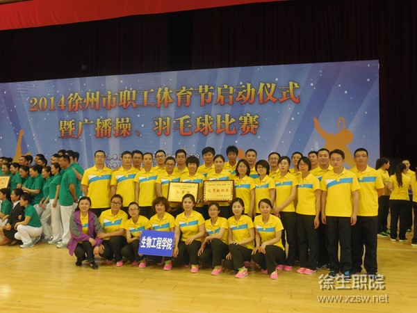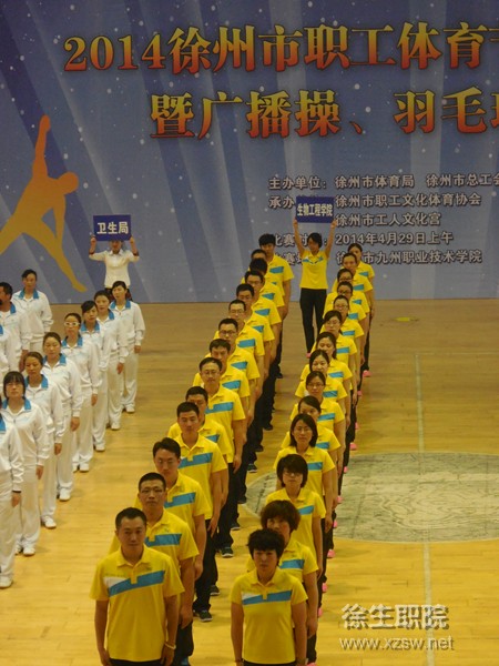 4月29日,徐州市体育局、总工会主办的2014徐州市职工第九套广播体操比赛在九州职业大学举行,共有22支企事业单位代表队参加。我院代表队在经过短期训练后参加比赛并荣获三等奖、院工会获优秀组织奖。 因准备比赛时间紧,代表队员们利用课外活动时间和周末进行训练,从入场方式、变换队形到每个动作,大家群策群力,互相指正动作缺陷,分享心得体会,反复熟悉动作要领。比赛过程中,队员们更是卯足劲,把每一个动作都做到位,充分展示了我院职工团结一致、昂扬进取的精神风貌。 (供稿:工会、体育部)