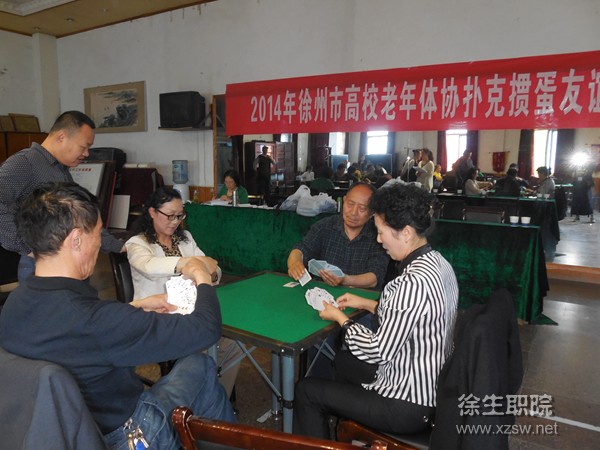 5月16日,徐州市高校老年体协第二届扑克掼蛋比赛在我院圆满结束。 本届比赛由徐州高校老年体协主办,我院工会承办,共有8支代表队参加。徐州市老年体协(原市人大常委会副主任)刘相主席、王兴华副主席(兼秘书长)、徐州高校老年体协(原徐州医学院院长)王勇主席、廉少纯副主席(兼秘书长)、张徐育副秘书长以及各代表队领队和队员出席开幕式。开幕式由我院工会主席尹红丽主持,徐州高校老年体协主席王勇讲话,我院副校长秦越华致欢迎辞。 比赛采用单循环赛,经过7轮28场的激烈角逐,徐州工程学院、徐州医学院、中国矿业大学分别获得了一、二、三名。通过此次活动,为我市高校老年同志们增加了更多认识与了解的机会,同时也丰富了大家的业余生活。大家纷纷希望徐州市高校老年协会多多组织此类活动,增加交流增进感情。 (供稿:工会)