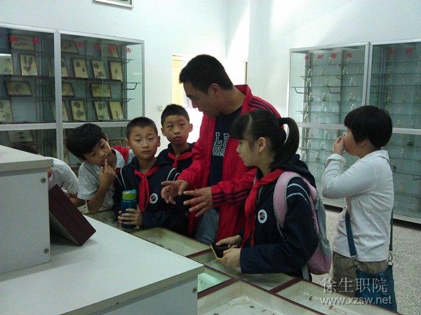 9月20日,我市首届科普文化节启动仪式在解放路小学举行。我院与市民俗博物馆、九里山雷达站等8个科普基地承接了科普文化体验游活动。 启动日,市科协科学技术普及部领导与解放路小学40余名师生来到我院昆虫标本馆,一起探索丰富其妙的昆虫世界,共同了解昆虫与环境及人类的密切关系。我院黄秀丽老师和强承魁博士现场讲解了害虫控制与益虫开发与利用等方面的科普知识。参观的同学们都被各种奇异的昆虫深深吸引,纷纷表示以后要更多的关注昆虫、爱护环境,更好地保护我们唯一的大家园——地球。 (供稿:科产处、农林工程系)