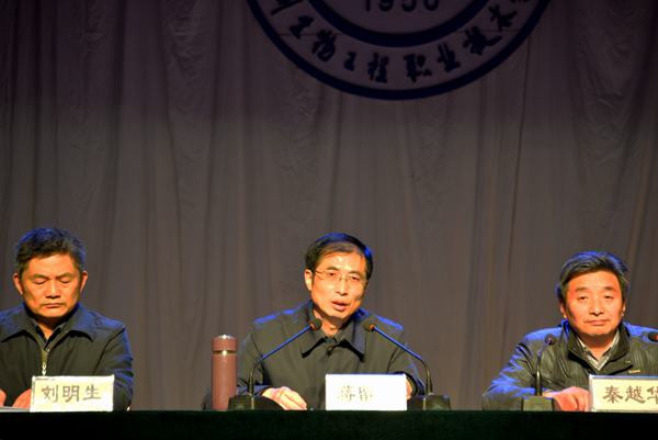 11月25日,我院2013-2014年学生工作总结表彰大会在大礼堂隆重举行。院长蒋留生,副校长秦越华、刘明生,各系部、处室负责人出席会议。400余名学生代表参加了大会。大会由副校长秦越华主持。 会上,院长蒋留生发表重要讲话。他首先对一年来我院学生工作所取得的成绩予以了充分肯定,向获奖的集体和个人表示了祝贺。他向在座的学生干部和广大学生提出了三点要求。一是要瞩目长远未来,树立人生目标;二是要提高个人修养,养成良好个人习惯;三是要把握高等教育的真谛,养成良好的学习习惯。最后蒋院长希望广大学生要抓住机遇,珍惜美好的青春和年华,多学习、多锻炼,做一个无愧人生和社会欢迎的有用人才。 副校长刘明生宣读了表彰文件,在主席台就座的领导向先进集体及先进个人颁发了奖牌、锦旗和荣誉证书。院学生会学生干部陶美玲代表获奖学生发言。 (供稿:学工处)