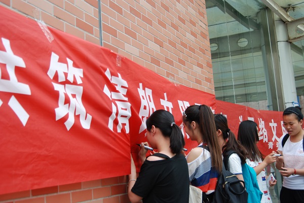 6月15日中午,院团委在学生学院餐厅门口发起了“清朗网络空间,我为网络文明加+1度”网络文明志愿倡议签名活动,倡导广大青年“文明上网,传播美好,弘扬新风尚;理性上网,明辨是非,释放正能量。”共同营造清朗的网络空间。 老师、同学们纷纷在倡议横幅上签署姓名,表达对改善网络环境的决心。签名活动的同时,院团委还通过校园广播、微博、微信等官方网络平台向更多同学发出倡议,呼吁大家文明、依法、理性上网。 该活动是响应和贯彻团中央“清朗网络·青年力量”青年网络文明志愿行动的号召,构建校园文明网络,践行社会主义核心价值观的一次活动,旨在学习实践习近平总书记关于网络安全和信息化系列重要讲话精神,引领团员青年牢记责任使命,积极参与网络治理,争做网络文明志愿者,体现先进性,传播好声音,为营造健康文明的网络文化环境贡献青年力量。