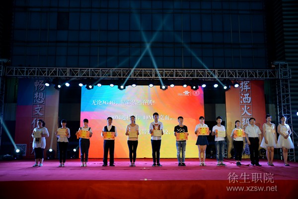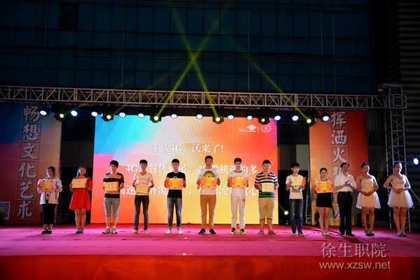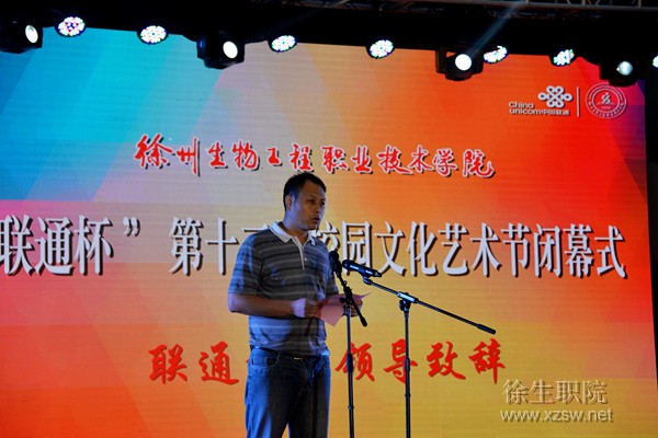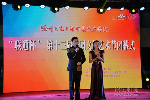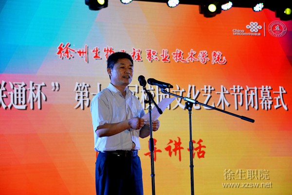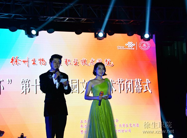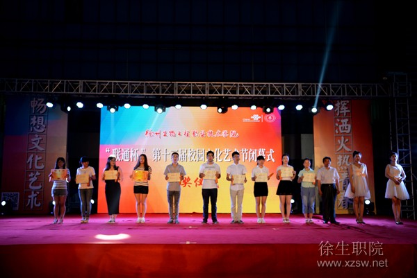 6月26日晚,第十三届校园文化艺术节闭幕式颁奖晚会在学院国旗广场隆重举行,表彰在本届艺术节活动中表现突出的先进集体和个人。院党委书记谢建林、院长蒋留生、副院长秦越华、刘明生,中国联通徐州分公司副总经理马桂军、学院各系部处室负责人及在徐各高校社团联合会代表参加了活动。 刘明生副院长在致辞中对艺术节的成功举办和取得优异成绩表示热烈祝贺,对精心指导活动的各位教师、大力支持活动的单位和部门表示感谢。希望各系、各部门推陈出新,把开展大学生校园文化活动与思想政治教育结合起来,精心打造更具我校特色的校园文化品牌。中国联通徐州分公司副总经理马桂军在讲话中表示联通公司将一如既往地继续关注、关心和支持学校教育事业,让校企合作结出丰硕的果实。 本届艺术节开幕以来,历时三个月,开展20余项主题鲜明、内容丰富、形式多样、参与面广的活动,营造了文明、和谐、高雅的校园文化氛围,展现了当代大学生蓬勃向上的青春风采。 晚会期间,还通过院团委微信公众号“徐生院共青团”利用新媒体技术与同学们进行线上互动,同学们通过微上墙进行现场互动,参加投票选举“最受喜爱的节目”和“幸运观众”的抽奖,现场观众的掌声、喝彩声和线上同学们一条条充满感情的留言祝福交相呼应,展示了我院新媒体工作的成果。 (供稿:团委、工会)