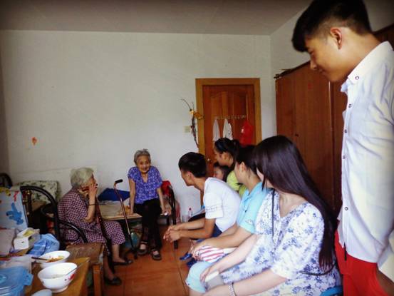 为了积极响应团组织的号召,落实“三下乡”活动,构建和谐社会,让更多的人了解孤寡老人现状,尊老敬老,增强其社会责任感,7月13日,我院汉韵毓秀汉服社的成员们走进塔东老年公寓。 在了解敬老院的基本情况之后,同学们纷纷走进老人们的宿舍,帮老人整理衣物,擦拭家具,和老人聊天,听他们讲自己的过去,并分享了自己的校园生活,还为老人们表演了舞蹈、朗诵、歌曲等小节目,同学们用朴实的行动换来了老人们幸福、温馨的笑容。 此项活动是我院暑期社会实践“和谐社会”项目之一,我院志愿者将继续定点定期走进敬老院开展志愿服务。 (供稿:团委)