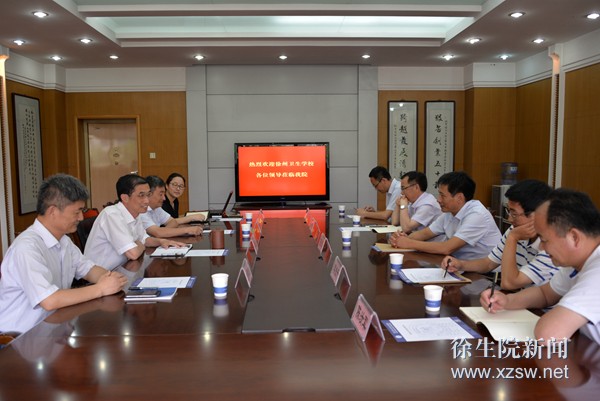 7月16日下午,徐州卫生学校校长任建玲,副校长李先干、孙守明、陈汝军等一行来我院考察交流。我院院长蒋留生,副院长秦越华、刘明生及相关部门负责人参加活动。