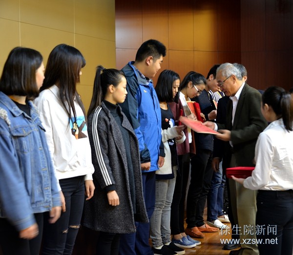 10月18日下午,我院在图文信息中心三楼报告厅隆重举行迎60周年校庆山崎先生学术报告会暨2015-2016学年“山崎奖学金”颁奖仪式。学院蒋留生院长、刘明生副院长,日本山崎株式会社会长山崎宽治先生、山崎会社技术专家山口隆英先生、山崎会社海外事业部部长崔华林先生、中日合资企业徐州山崎农产品技术研发有限公司曹修春总经理出席仪式,农林工程系园艺、植保、园林专业学生及相关专业老师参加了仪式。活动由农林工程系王胜永主任主持。 蒋留生院长代表学院对山崎先生一行表示热烈的欢迎和衷心的感谢,作为第一个海外人士在我院设立的奖学金,山崎奖学金对激励学农学子、弘扬优良学风、推动校企合作深化发展具有深远的影响。他希望广大学生不要辜负山崎先生的殷切希望,要常怀感恩之心,以行动回报爱心,牢记“瞻远行实”的校训,加强修养,刻苦学习,努力成为品行端正、勤奋踏实、抱负远大、学问深厚、能力卓著、深受企业和社会欢迎的人才,为现代农业发展、区域经济建设做出更大的贡献。 刘明生副院长宣读了表彰文件,山崎宽治先生为获奖学生颁发了奖金和证书。山崎先生鼓励青年学生陶冶情操,培养高尚的人格,肩负起现代农业发展的使命。植保专科14班董帆同学作为获奖学生代表发表了获奖感言。 颁奖仪式后,山崎先生做了主题为食品垂直整合性改革的方向学术报告,他分析了当前农业生产中化肥、农药不合理施用对土壤造成的危害,介绍了山崎公司活用蔬菜残渣实现土壤改良的循环型农业。报告加深了广大师生对农业生产科学化的理解和认识,对结合绿色农业生产开展教学和实践活动有了新的启迪。 (供稿:农林工程系、办公室)