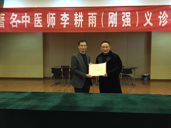 为增强教职工对健康的关注,了解自己的身体情况,普及养生保健知识,12月23日下午,院工会特邀著名中医师李耕雨(刚强)一行在图文信息中心一楼会议室为教职工进行免费义诊。院长蒋留生、副院长刘明生来到义诊现场并为李耕雨(刚强)医师颁发学院“客座教授” 荣誉证书。近百名教职工前来咨询问诊。 李耕雨(刚强)先生自幼酷爱中国传统文化,潜心学习经史子集、经典中医理论,注重理论联系实际,努力恢复“立竿见影”的中医原貌,崇尚“道法自然”的养生。前来就诊的教职工现场体验了中医文化的独特魅力,无不为李耕雨(刚强)先生 “大道至简”的针灸称奇叫好,见证了“李一针”的神奇功效,活动得到了教职工的广泛称赞。 (供稿:院工会)