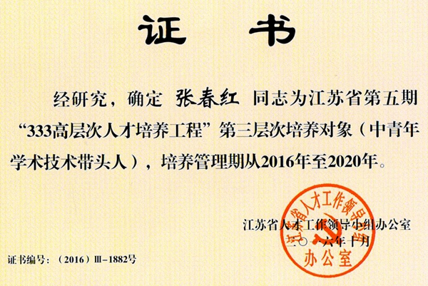 根据江苏省人才工作领导小组《关于确定江苏省第五期“333高层次人才培养工程”第三层次培养对象的通知》(苏人才〔2016〕7号)精神,我院张春红、朱广琴、刘飞三位同志入选省第五期“333高层次人才培养工程”第三层次培养对象,培养管理期从2016年至2020年。至此,我院先后有7位同志入选为省“333高层次人才培养工程”培养对象。 “333”工程是由江苏省人才办组织实施,旨在加强我省高层次人才队伍建设,提升高层次人才的竞争力和创新创业能力的高层次优秀人才培养项目。通过选拔一批政治素质好、业务水平高、创新创业能力强的中青年优秀人才,为实现我省“十三五”经济社会发展战略目标提供坚强的人才保证。我院优秀中青年骨干教师的不断入选将对学校的师资队伍建设发展起到积极的推动作用。近年来,我院不断加大教师培养力度,利用各种渠道,采取多种形式,鼓励教师积极申报各种师资培养培训项目,为我院人才培养创造良好的成长环境。 (供稿:组织人事处)