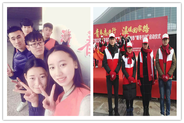 1月13日,以“青春志愿行温暖回家路”为主题的2017年江苏青年志愿者服务春运“暖冬行动”在徐州东站站前广场启动。团中央志工部副部长黄英锋为上海铁路局徐州东站“春运暖冬号”高铁列车授牌,全体春运志愿者宣誓,做出庄严的承诺。在为期24天的春运工作中,我校十余名志愿者活跃在徐州市春运各站点,不畏寒冷和辛劳,用热情周到、耐心细致的服务,温暖了无数旅客的回家路。