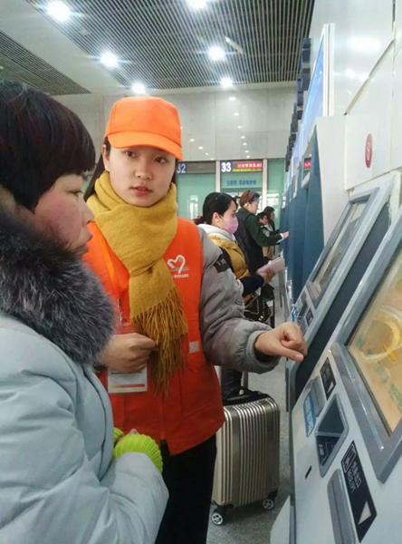 “阿姨,您是要去哪的呀,我来帮你吧……” “您把票收好,不要丢了!”