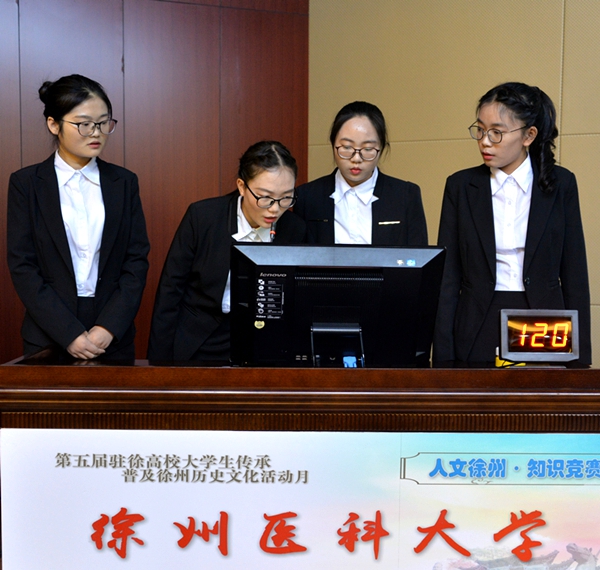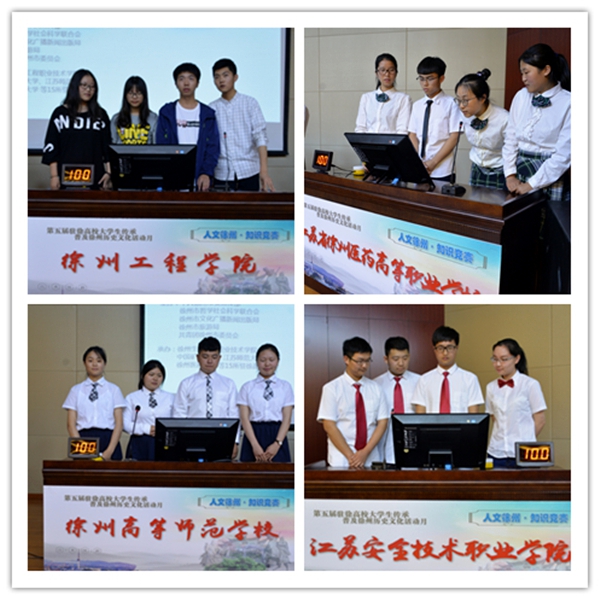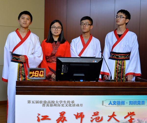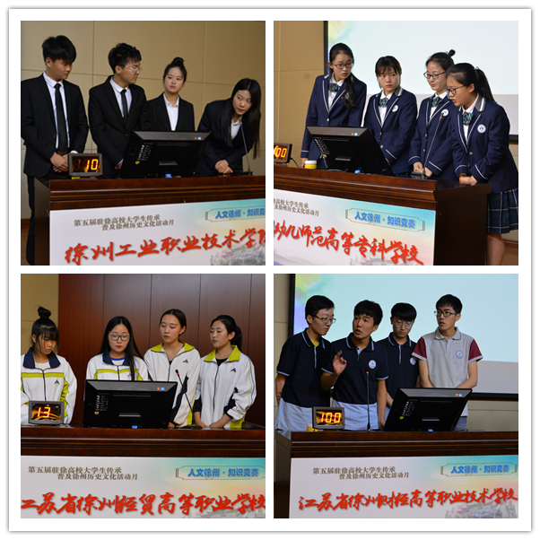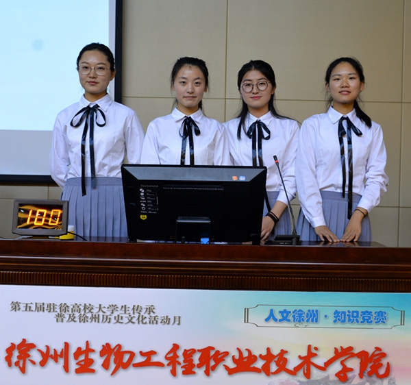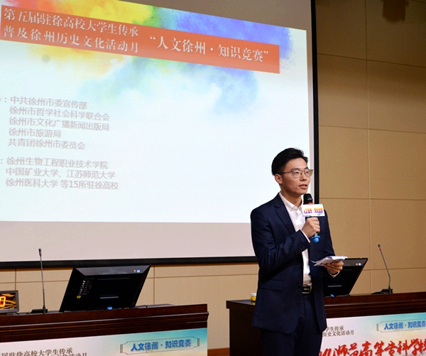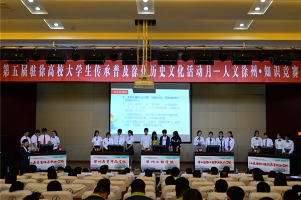 5月24日晚上,第五届(2017)驻徐高校大学生传承普及徐州历史文化活动月“人文徐州·知识竞赛”在图文信息中心报告厅举行。市委宣传部副部长、市社科联主席刘宗尧,市社科联副主席王宝钢,市旅游局副局长张伟,共青团徐州市委副书记徐子宇,我院副院长刘明生等出席活动。 本次活动由市委宣传部、市社科联、市文广新局、市旅游局、团市委等单位联合主办,徐州生物工程职业技术学院承办。参赛单位有:中国矿业大学、江苏师范大学、徐州医科大学、徐州生物工程职业技术学院等15所驻徐高校。 比赛开始之前,刘明生副院长代表学院致辞。刘院长首先对大家的光临表示热烈欢迎,对各参赛的代表队表示衷心祝贺。他向与会的领导、嘉宾和参赛人员介绍了学院的基本情况,特别是近几年学院在人才培养和社会服务方面取得经验和成果。他希望同学们以“人文徐州·知识竞赛”为契机,扎实学习、认真汲取优秀传统文化精髓,不断提升人文素养,真正将中华优秀传统文化学习好、继承好、传承好。 随后,知识竞赛正式开始。此次竞赛分为必答题、抢答题、观众互动答题和风险题四个环节,竞赛内容涉及徐州的历史名人, 风水人文、名胜古迹和美食文化等相关知识,涵盖了徐州的地理环境、彭祖文化、宗教文化、军事文化、诗词文赋等诸多方面,各校代表队激烈角逐,比分层层咬紧。互动答题环节,观众的积极参与让现场气氛十分活跃。风险题环节,各代表队比分逐渐拉大。最终,我院代表队的张娅娜、王雪萍、沙俊紫、袁欣同学在队长耿倩的带领下,不负众望,勇夺桂冠。 比赛结束后,彭城书院院长汉风老师对本次活动进行了精彩点评,他对各代表队表现表示欣赏和肯定,赞扬本次活动在徐州历史文化推广上的作用,对各代表队在知识要点掌握和临场情绪调控等方面的表现提出了中肯的建议,并即兴送给赛事对联一副:“人文徐州,彰显六千年文明底蕴。知识竞赛,争辉众高校学子风采。” 最后,市委宣传部副部长、市社科联主席刘宗尧进行了总结讲话。他首先代表主办单位对各高校代表队的精彩表现表示热烈祝贺,对承办单位为赛事的辛勤筹备表示诚挚的谢意。他指出,大学生是传承中华优秀传统文化的重要群体,要增强文化自信,以文化的力量来改变社会的面貌,实现中国梦。刘主席希望更多的大学生能够参与到传承普及徐州历史文化活动中来,增强文化认同和文化自觉,展示大学生精彩的人生,创造新的辉煌。 出席此次活动的还有徐州市音乐家协会、传统文化与产业发展研究会、心理咨询师协会、创新教育学会、区域文化研究会、饮食文化研究会、孔子学会和驻徐高校等30多家单位的有关部门负责人等,来自15所参赛高校的300多名学生观看了竞赛。 徐州市电视台对本次活动进行了跟踪报道。 (供稿:团委、办公室)