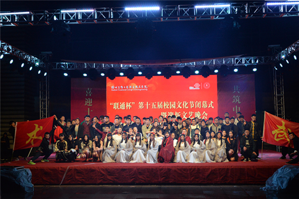 10月10日晚上7点,我校“联通杯”第十五届校园文化艺术节闭幕式暨迎新文艺汇演在国旗广场隆重举行。副院长刘明生、中国联通徐州分公司沈波经理和各系部负责人以及全体新生参加了闭幕式。 活动在饱含对艺术节圆满闭幕和新生衷心祝福的短片中拉开帷幕,舞蹈《History》点燃了全场欢快的气氛,正如刘明生副院长在闭幕式致辞中所说:“校园文化是一所学校在长期办学过程中所积累的最珍贵的精神财富。校园文化艺术节是校园文化艺术的浓缩,是对全院师生文化艺术才能和素质的一次综合考验,也是学校校风和师生风貌的一次全面展示。” 舞台灯光再次亮起时,时光轴被拨回古代,身着汉服的女生在悠扬的古琴声中翩若惊鸿,宛如游龙,演绎一段赏心悦目的《破晓》。《武林风云》和《踢出一片天》给观众带来了激动人心的对打、气势磅礴的大刀、流光溢彩的烟花双截棍、精彩的集体拳和帅气的跆拳道踢板。小品《快与慢》让大家捧腹大笑的同时又发人深省,正确的生活态度应该张弛有度,快慢相容。节目既有时尚活泼、青春现代舞《Good Night Kiss》,也有庄严肃穆的诗歌朗诵《秋瑾》;既有节奏欢快、跳出藏族人民豪迈的《拉萨汉子》,又有纯真质朴、细腻清新的徐生版《成都》。最后晚会在舞蹈《时间都去哪儿了》中落下帷幕。晚会节目精彩纷呈,现场掌声迭起。 本届校园文化艺术节自启动以来,历时三个多月,期间成功举办了中华诵经典诗文诵读大赛、第十五届“舞出我精彩”舞蹈大赛、第二届“梦想剧场”大学生戏剧大赛、“青春之星”主持人大赛、“一招定乾坤”棋王争霸赛、中华诗词大会比赛、大学生创新创业活动周、徐州市历史文化知识竞赛等一系列活动。学校高度重视,广泛宣传,精心组织,各项活动都顺利开展,广大同学积极参与,取得了良好效果。 (供稿:团委)