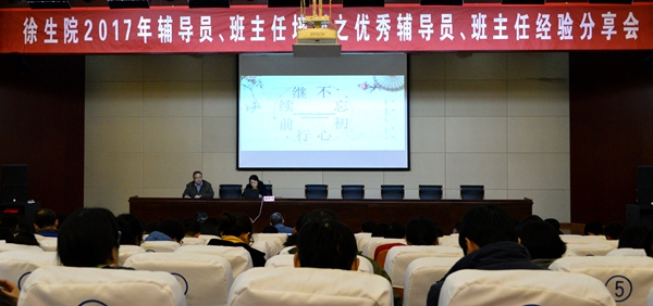 11月20日下午,学校2017年辅导员、班主任培训之优秀辅导员、班主任经验交流分享会在院图文信息大楼三楼报告厅举行。刘明生副院长出席会议并讲话,学工处及各系学生工作负责人、全体辅导员和班主任共120余人参加了交流会。 优秀辅导员代表魏建玮老师以“不忘初心、继续前行”为主题,从一年来的履职情况、工作体会及今后努力方向与大家进行分享。魏老师认真分析了辅导员九大工作职责,用自身工作实践诠释了职责。魏老师还谈了辅导员工作的体会,建议辅导员和班主任要做好自我发展规划、重视自我学习和能力提升、注重自我身心调节。优秀班主任代表彭敏老师着重分析了新时期职校生新特点,提出了班级工作对策,她认为做好一名班主任要专心、细心、耐心工作,放大学生优点,真心关爱学生,就能成就学生,收获幸福。 刘明生副院长肯定了学生工作一年来取得的成绩,感谢全体学工人员的辛勤付出。他指出,全校学生工作稳中有进,秩序井然,学工部门重视学生工作队伍建设,学生教育、管理和服务工作更加规范、有效。他希望全体辅导员和班主任要凝心聚力,努力工作,端正价值取向;希望大家注重学习,不断提高工作水平;希望全体辅导员和班主任要加强沟通协调,互相补位,共同努力,促进学生工作再上新台阶。 学工处张韧处长对近期的学生工作进行了强调布置,要求全体学工人员重视安全工作,尤其是冬季公寓防火工作。 (供稿:学生工作处)