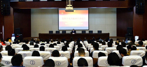 11月27日下午,学校在图文信息中心报告厅举行党的十九大精神宣讲报告会,市委宣讲团成员、学校党委书记谢建林作宣讲报告。全校党员干部和重点人群聆听了报告会。 谢建林书记按照市委宣传部“8个讲清楚”的要求,从党的十九大的主题、主要成果、深刻领会把握习近平新时代中国特色社会主义思想、党的十八大以来取得的历史性成就和发生的历史性变革、准确领会把握中国特色社会主义进入了新时代、准确领会把握我国社会主要矛盾的历史性变化、准确领会把握“两个一百年”奋斗目标的战略部署、准确领会把握我国经济社会发展重大战略部署、准确领会把握坚定不移推进全面从严治党等方面解读了党的十九大精神。 谢建林书记指出,党的十九大是在全面建成小康社会决胜阶段、中国特色社会主义发展关键时期召开的一次十分重要的大会,是一次在新的历史起点上开启党和国家事业新征程的大会,是一次不忘初心、牢记使命、高举旗帜、团结奋进的大会。承担着谋划决胜全面建成小康社会、深入推进社会主义现代化建设的重大任务,事关党和国家事业继往开来,事关中国特色社会主义前途命运,事关最广大人民根本利益。 谢建林书记强调,学习好宣传好贯彻好党的十九大精神,是全校当前和今后一段时期的首要政治任务。要精心组织,周密部署,在前一段的工作基础上把学习宣传贯彻党的十九大精神进一步引向深入,贯彻落实到学校各项事业当中。 结合学校实际,谢建林书记就进一步学习宣传贯彻落实党的十九大精神作出部署安排:一要抓好学习宣传和研究。广大党员特别是领导干部要率先带头学习十九大精神,读原文、学原著、悟原理,扎实开展分层次、全覆盖党员干部培训;各级党组织要制定学习计划,列出专题学习研讨内容,学通学透学懂;要结合“不忘初心、牢记使命”主题教育,全面、深入、系统学习好十九大精神;要把学习十九大精神与思政教育结合起来,推动党的十九大精神进教材、进课堂、进头脑。加强学校各类媒体的宣传,开展多形式、多样化的宣传活动;设立和打造习近平新时代中国特色社会主义思想研究基地和平台,扎实做好理论研究、实践、创新,推出一批高质量、有深度的理论研究成果。二要结合学院实际,抓好贯彻落实。要全面贯彻党的教育方针,落实立德树人根本任务,发展素质教育;要完善职业教育和培训体系,深化产教融合校企合作,实现高等职业教育内涵式发展;要办好网络教育、继续教育,以教育信息化带动教育现代化;要加强师德师风建设,培养高素质教师队伍。 最后,谢建林书记号召全体党员要认真学习领会党的十九大精神,紧密团结在以习近平同志为核心的党中央周围,高举中国特色社会主义伟大旗帜,锐意进取,埋头苦干,为实现推进现代化建设、完成祖国统一、维护世界和平与促进共同发展三大历史任务,为决胜全面建成小康社会、夺取新时代中国特色社会主义伟大胜利、实现中华民族伟大复兴的中国梦、实现人民对美好生活的向往继续奋斗。 (供稿:党政办公室)