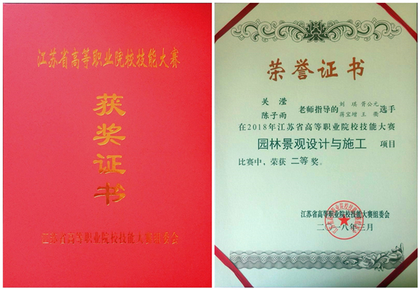 在刚刚结束的2018年江苏省高职院校技能大赛上,我院代表队冲入全省前六,夺得“园林景观设计与施工”赛项团体二等奖。 本次大赛在江苏农林职业技术学院举行,来自全省32支代表队128名选手参加了“园林景观设计与施工”赛项的比赛。比赛设计综合考验了选手的施工、绘图、方案构思、软件技术等综合专业能力和技能,也检验了全省各高职院校的教学效果和成果。由农林工程系刘琪、胥公元、蒋宝增、王衡四名选手组成的学校代表队,在指导老师关滢和陈子雨的带领下团结协作,发挥出色,荣获二等奖。 园林技术专业为我院中央财政支持建设专业,近年来农林工程系依托学校省级现代农业(花卉)产业技术体系推广示范基地,注重专业内涵建设及高素质技术技能人才培养。为在本次技能大赛中实现突破,学校领导、教务处、农林工程系相关责任人多次到备赛现场督导备赛工作,指导教师和参赛选手利用课余时间及寒假周密策划,科学训练,在备战中以赛促教、以赛促学,在大赛中发挥出了良好的专业技能水平。 (供稿:农林工程系)