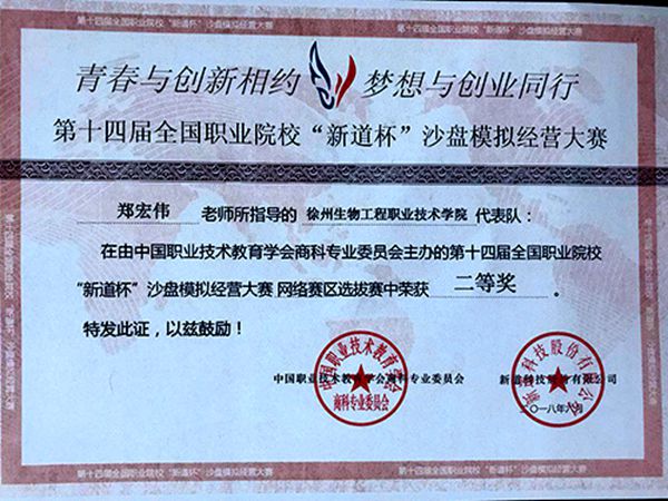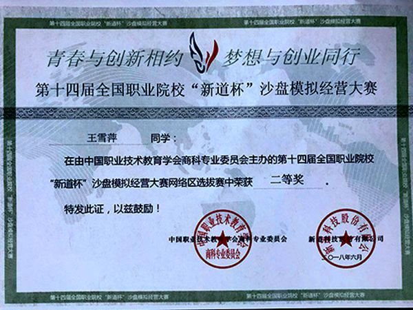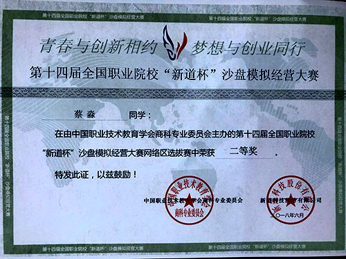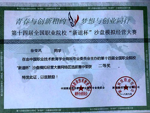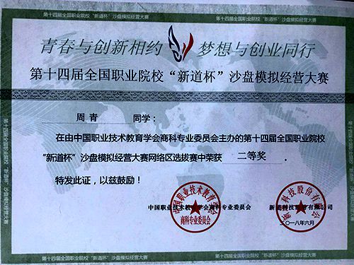 我校学子在第十四届全国职业院校“新道杯”沙盘模拟经营大赛中荣获二等奖