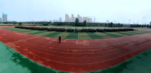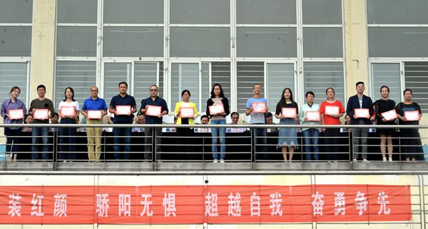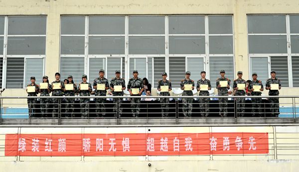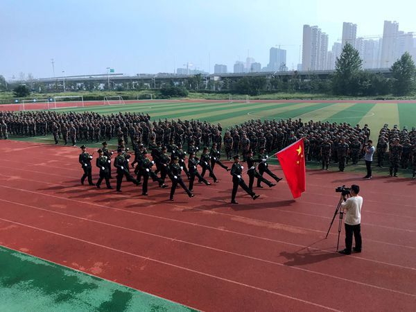 9月21日上午,我院在体育场隆重举行2018年军训会操暨开学典礼。学院党委书记谢建林,院长蒋留生,承训部队副政委李晓光,副院长秦越华及各系部处室负责人出席大会。大会由副院长秦越华主持。经过10天军训生活磨练的2018级新生威武肃立,列队等待接受检阅。 大会首先举行了隆重的升国旗仪式。国旗护卫队的队员迈着整齐矫健的步伐护送国旗通过主席台,鲜艳的五星红旗伴随着激昂的国歌缓缓升起。随后,蒋留生院长检阅了新生方队。分列式上,和着雄壮的乐曲声,各方阵迈着矫健而整齐的步伐,喊着嘹亮的口号,依次走过主席台接受检阅。在军训会操环节,军训教官进行了队列和武术演示,新生方阵进行了精彩的军体拳和刺杀操表演,同学们口号嘹亮、精神昂扬,动作整齐、充满力量,充分展示了2018级新生士气如虹的精神面貌。整场汇报表演每一位新生都以激昂的斗志挥洒着青春的誓言,精彩的表演博得了全场热烈掌声。 在表彰环节,秦越华副院长宣读了表彰文件,主席台成员分别为先进基层党组织、优秀共产党员、优秀党务工作者,2017年度优秀系部处室、考核优秀个人,30年教龄教师,2017-2018年度优秀辅导员和优秀班主任,2018年军事训练先进集体和优秀个人代表颁奖。蒋留生院长代表学院向承训部队赠送了锦旗。 党委书记谢建林代表全院教职员工向2018级新同学表示热烈的欢迎,向不辞辛苦指导军训的全体教官表示诚挚的感谢和崇高的敬意。他向站在人生历程新起点上寻找新梦想的全体新生提出四点希望:一要怀揣梦想,志存高远。二要脚踏实地,勤奋学习。三要善思善学,活学活用。四要立德修身,心怀大爱。最后,谢书记希望同学们坚定理想信念,志存高远,善学善用,立德修身,脚踏实地,用自己的青春与汗水,知识与毅力,在火热的青春中放飞人生梦想,在拼搏的青春中成就美好华章。 谢昕老师代表全院教师向2018级新生的到来表示欢迎,希望同学们以军训为起点,努力拼搏、奋发进取,在学习生活中锻炼自己、塑造自己、展示自己,把自己培养成为一名合格的大学生。 新生代表赵尉彤同学向老师和同学们汇报了10天的军训心得体会,表示一定会继续坚持和发扬优良传统,以军人式的昂扬姿态投入到学习和生活中,谨遵校训,努力奋进,共同携手创造徐生院的新明天。
