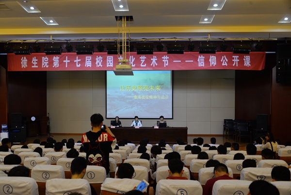 5月16日院团委组织的第十七届文化艺术节系列活动——信仰公开课开讲。学院领导对“治人文”课堂给予大力支持,院纪委谭红玲书记在开讲前对徐生青年寄语,使青年学子深受鼓舞。 本次公开课邀请到曾给习近平总书记做讲解员的淮塔管理局编研文保处贾萍处长主讲,公开课的主题是“传承红色基因发扬淮海战役精神”。贾萍处长与学生们一起重温习近平总书记在参观淮海战役纪念馆时的讲话:“革命胜利来之不易。我们要好好回报人民,让人民过上幸福美好的生活”。同时,她结合史实资料分析了淮海战役的重要性,又联系实际弘扬淮海战役的精神。贾萍处长鼓励当代青年应该传承红色基因,在信仰上保持忠诚坚定、不忘初心;在能力上学会科学研判、不断学习;在精神上要勇于担当、拼搏奋进;在工作中要团结协作、顾全大局。青年学生深受淮海战役精神感染,增强了文化自信,立志在新时代展现红色基因传承人的风采。 (供稿:团委)